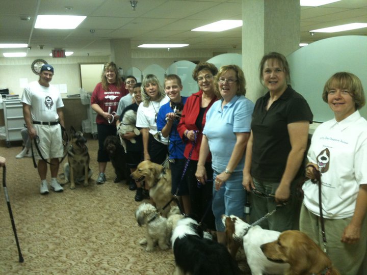 SOME OF THE DOGS MAKE MONTHLY VISITS TO LOCAL NURSING HOMES, SCHOOLS, PARADES AND COMMUNITY COLLEGES